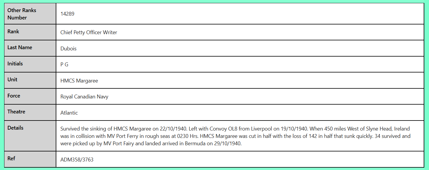 14289 Chief Petty Officer Writer P G Dubois Royal Canadian Navy