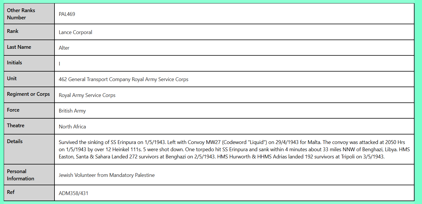 PAL469 Lance Corporal I Alter Jewish Volunteer from Mandatory Palestine