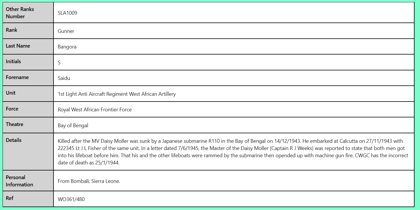 SLA1009 Gunner S Bangora Royal West African Frontier Force