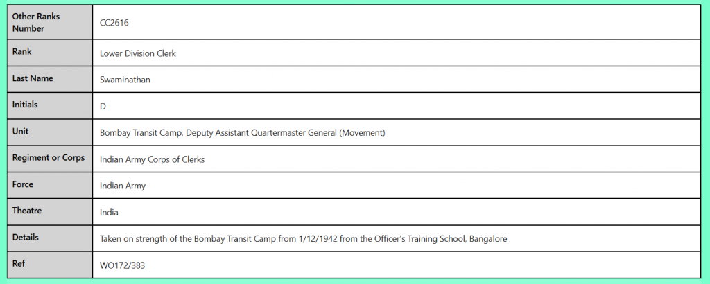 CC2616 Lower Division Clerk D Swaminathan Indian Army