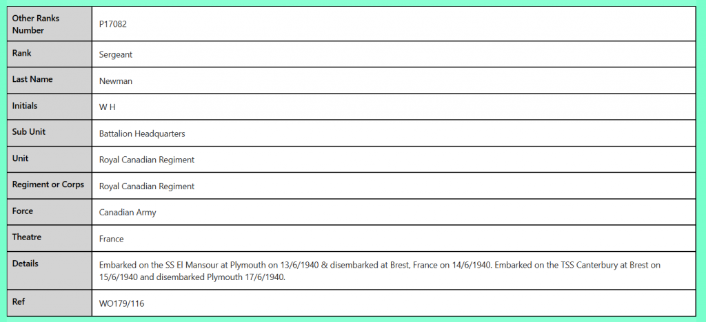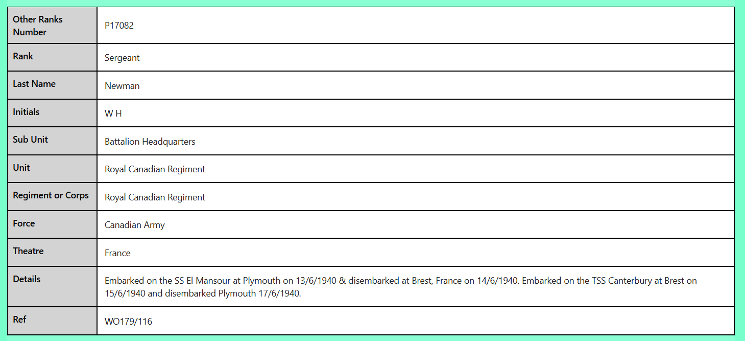 P17082 Sergeant W H Newman Canadian Army