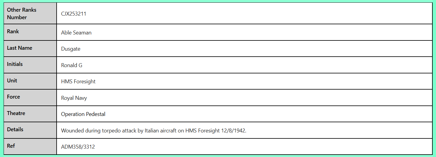 Admiralty records of operations are littered with names and information. Along with these our Royal Navy WW2 records are compiled from casualty files and Admiralty Fleet orders (AFOs)